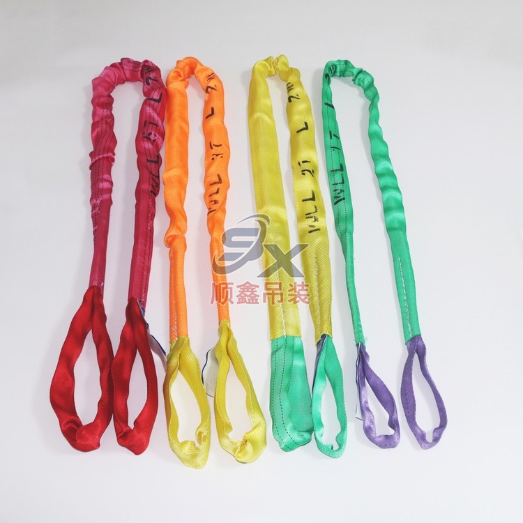 柔性吊帶在吊裝使用過程中有減震、不腐蝕、不導電,且在易燃易爆環(huán)境下無火心星等特點。其截面形狀是隨吊件的表面形狀變化的,且本身柔軟易曲,工作中會緊貼或卷纏在吊件周圍,而不會損壞吊件。